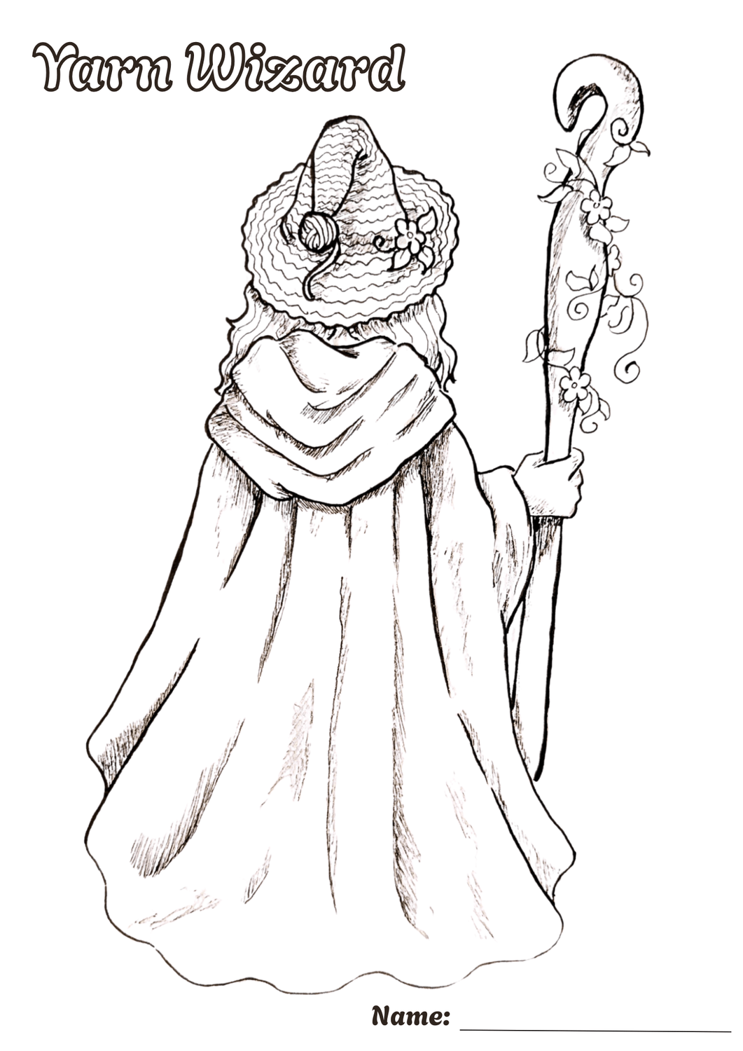 Simple! I can't wait to see what you all come up with. The winner will be drawn and that person will then get to submit their picture (or of a friend or celebrity of their choice, if they prefer) to me at uponastitch@gmail.com and have themselves drawn as a fantasy fiber arts character like the Yarn Wizard. Winner can request a certain type of character (knitting assassin, yarn hoarding goblin, crochet healing elf) and any particular details. Permission will be asked if this can character can be used by creator for coloring page for the fiber arts community or if they prefer it for their personal use.